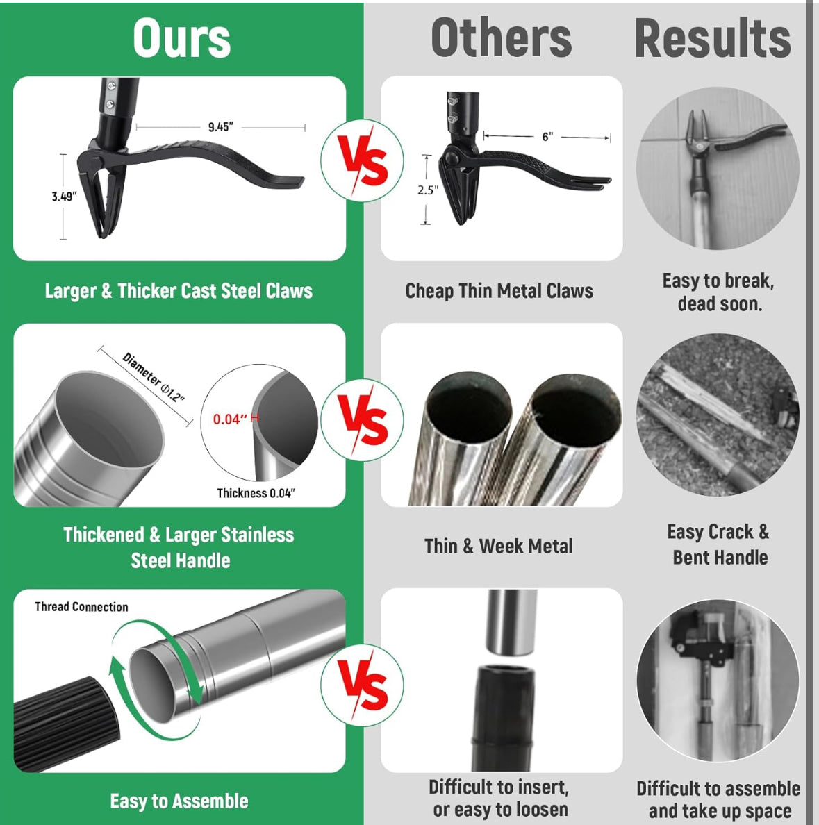 46” Weed Puller Tool, 4-Claw Stand Up Weeder Tool with Adjustable Handle for Removal Weeds