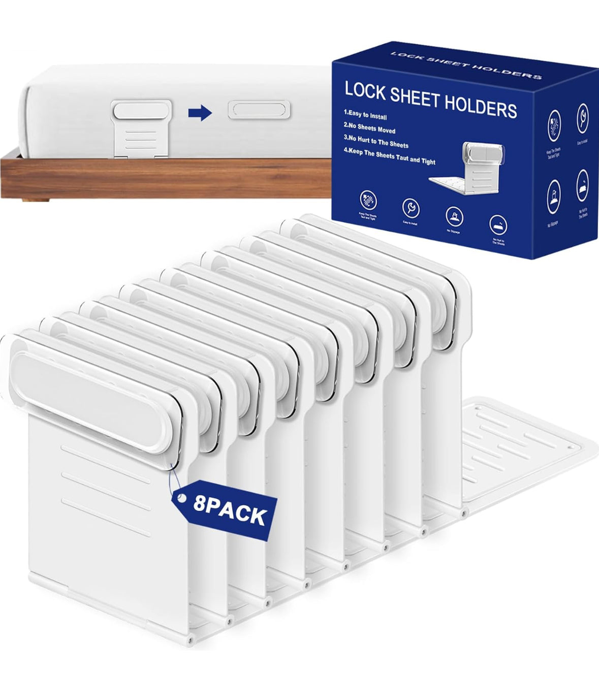 - 【Fits All Sheet Sizes & Mattresses】Whether it's twin, full, queen, or king, our 8-piece set includes long and short sheet holders to adapt perfectly. These bedsheet holders for corners work with any sheet type, delivering flawless alignment every time. Lock sheet holders are suitable for bunk beds, lift beds