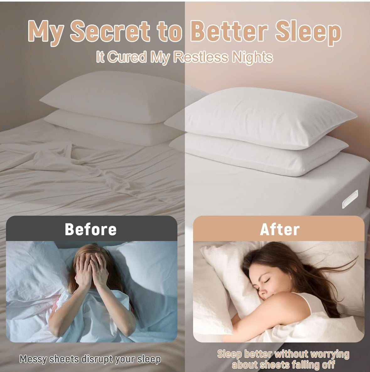 - 【Quick-Install Fitted Sheet Holder for Corners】Set them once and forget it! Featuring tool-free, 30-second installation on any mattress. Perfect for busy households – change sheets effortlessly with our bed sheet holders for corners